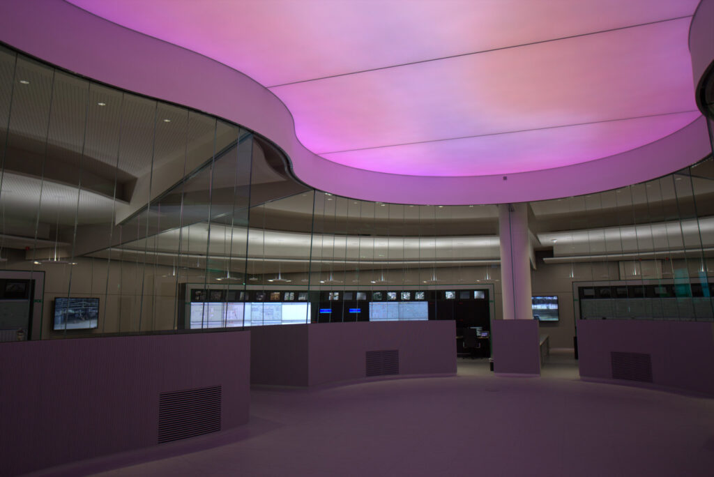 Die neue Leitwarte der PCK Raffinerie ist in einem explosionssicheren Bau untergebracht. Um den Mitarbeitern in dem fensterlosen Bau eine möglichst angenehme Arbeitsatmosphäre zu bieten, wurde in Zusammenarbeit mit dem Frauenhofer IAO und Lichtvision Design ein Lichtkonzept entwickelt, das mit Hilfe einer LED-Deckenbeleuchtung unterschiedliches Wetter simulieren kann.