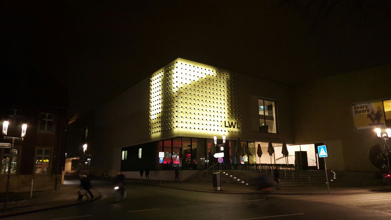 Das LWL- Landesmuseum für Kunst und Kulturgeschichte in Münster wird geschmückt durch die Lichtinstallation von Otto Piene an der Fassade des Anbaus aus den 1970er Jahren.